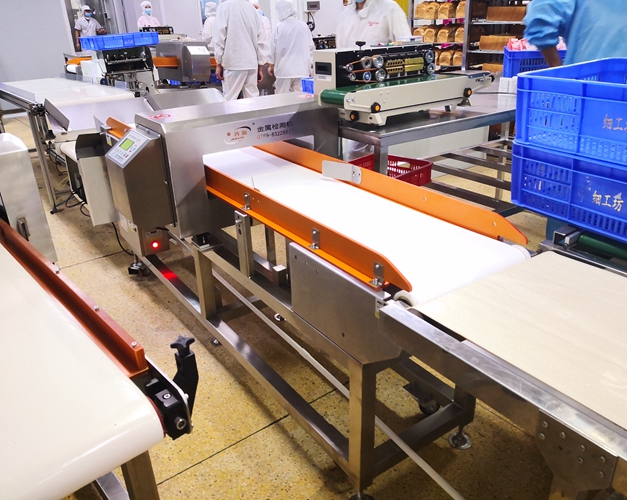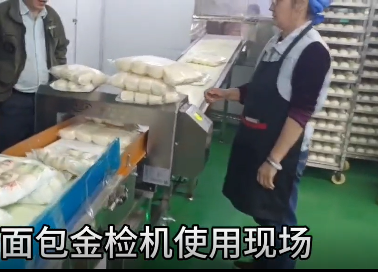 廣東某面包生產(chǎn)廠家使用連之新食品面包金檢機(jī)使用現(xiàn)場(chǎng)