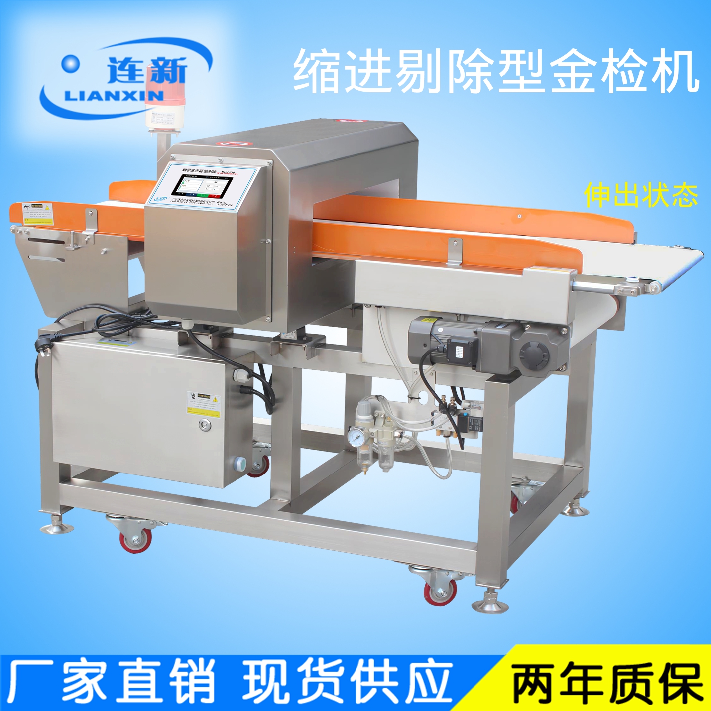 連之新伸縮剔除型金屬檢測(cè)機(jī),是一款專門定制來檢測(cè)在線散裝食品的金屬異物檢測(cè)機(jī),采用縮進(jìn)式剔除機(jī)構(gòu),可避免傳統(tǒng)的剔除機(jī)構(gòu)剔除不準(zhǔn)確和容易夾包的現(xiàn)象。