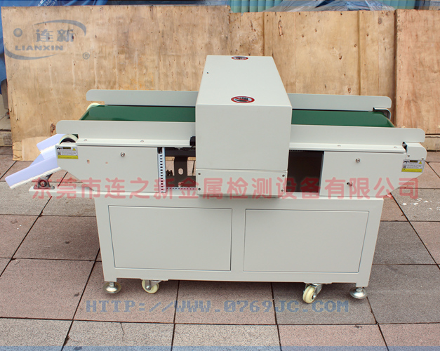 連新牌JZQ-7300B型翻板式輸送帶式檢針機專為高爾夫球等球體\輔料\飾品\鞋材等小件物品檢針設(shè)計制作,檢測到金屬異物的問題產(chǎn)品可自動翻板排除.空間占用少及電源消耗量更低,全鋼架靜電噴涂工藝制作.實用,耐用,美觀!