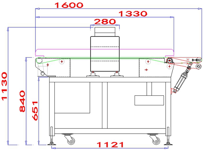 產品名稱:900寬幅升降排除式餅干生產線金屬檢測機