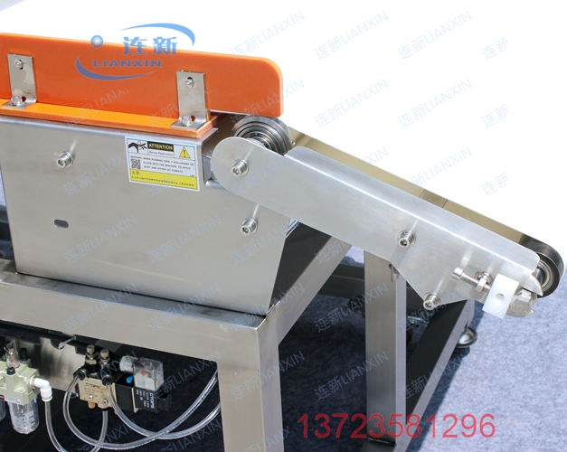 7.檢測到金屬異物,輸送帶前端部分下沉分流排除異常產品!